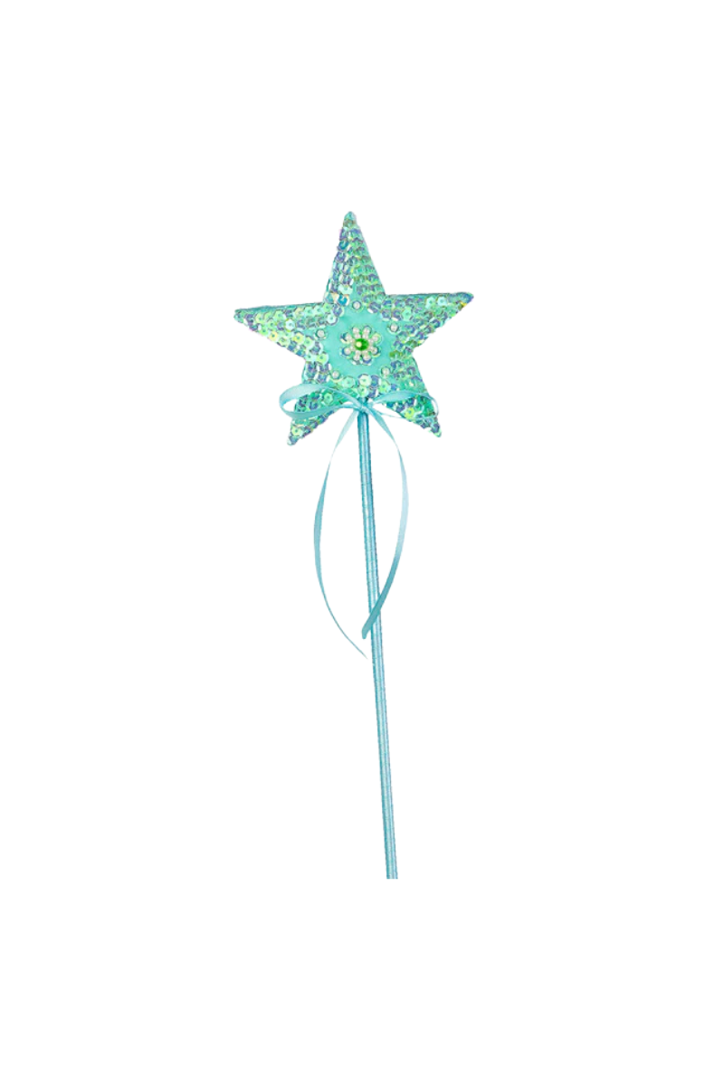 Avec sa grande étoile turquoise recouverte de sequins brillants, la baguette "Isabelle" de la marque Souza est un véritable trésor pour les petits fans de magie.