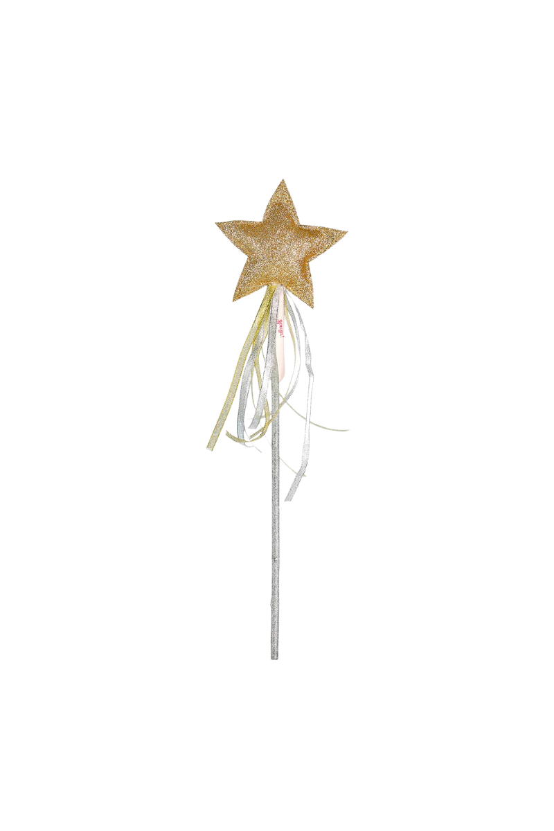 Avec son étoile dorée et pailletée et ses rubans scintillants, la baguette "Rosaline" de la marque Souza est l’accessoire idéal pour compléter un déguisement de fée, de magicienne ou de princesse.