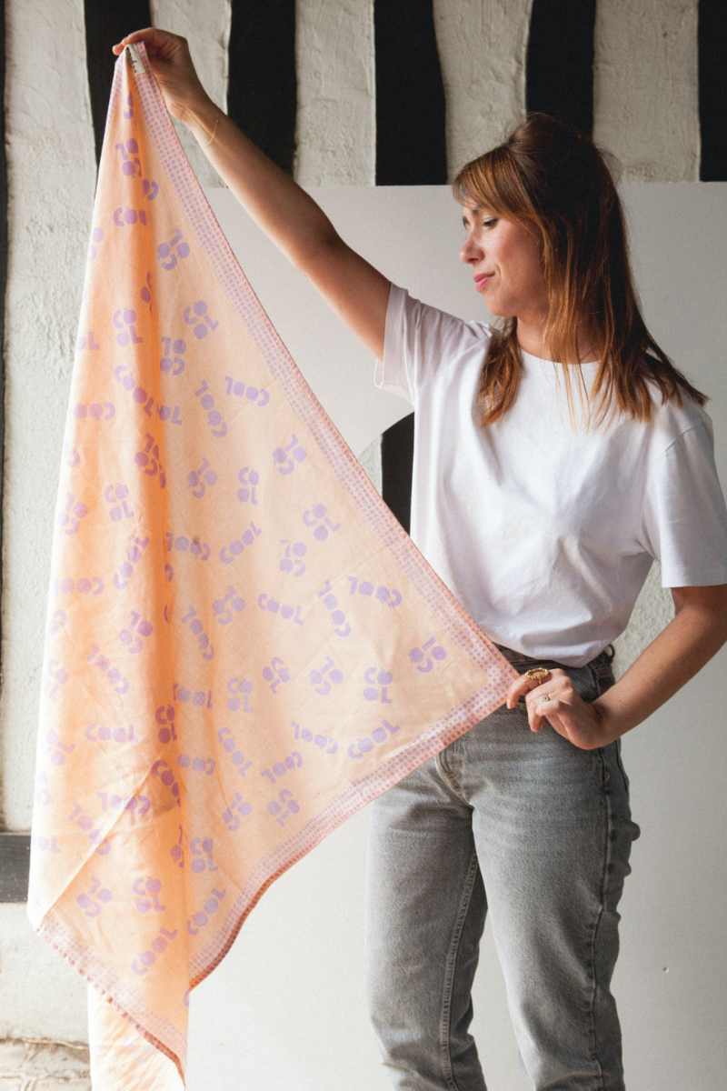 Il est fabriqué artisanalement grâce à la technique indienne du block-print. Ses couleurs sont réalisées à partir de pigments naturels. Cette confection manuelle peut entraîner certaines "irrégularités".