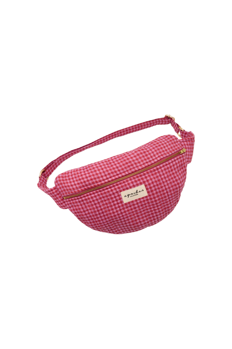 Découvrez ce sac banane Keli Apaches en coton, dans sa version maxi, imprimé vichy "Khadi" fuchsia. Pratique pour ranger vos affaires essentielles du quotidien, téléphone, clés, à emporter facilement avec vous.