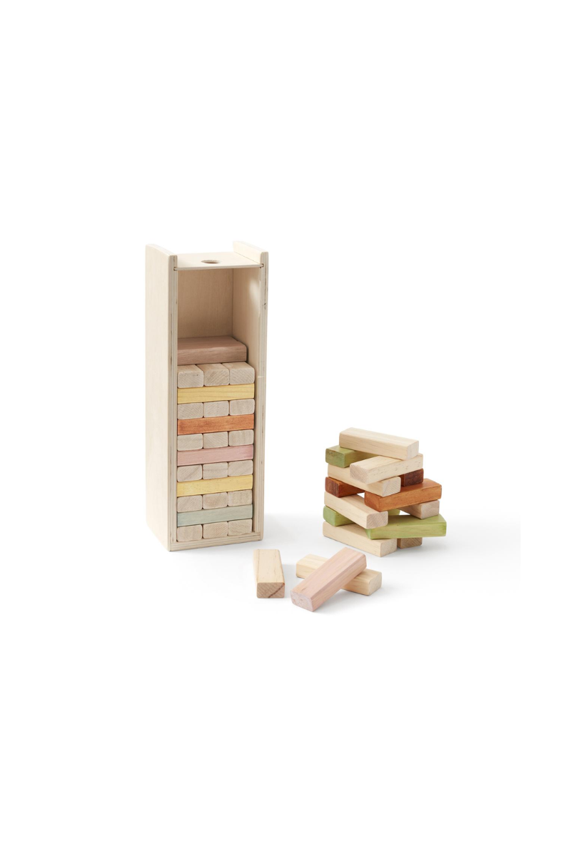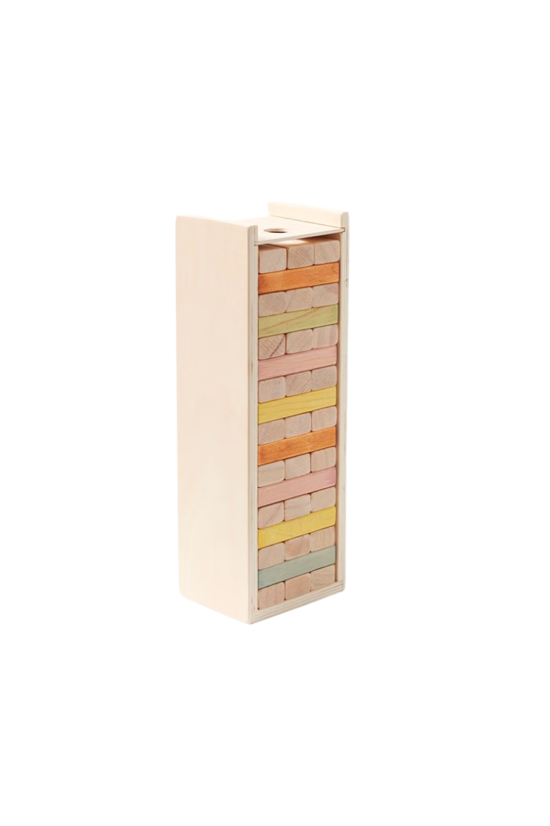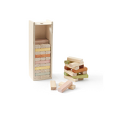 Chaque brique mesure 7,5x2,4x1,5 cm et est fabriquée en pin. Les briques sont colorées avec une teinte transparente satinée pour que chacune conserve son aspect unique. Revêtues avec une laque à base d'eau. La boîte de rangement en bois est incluse.