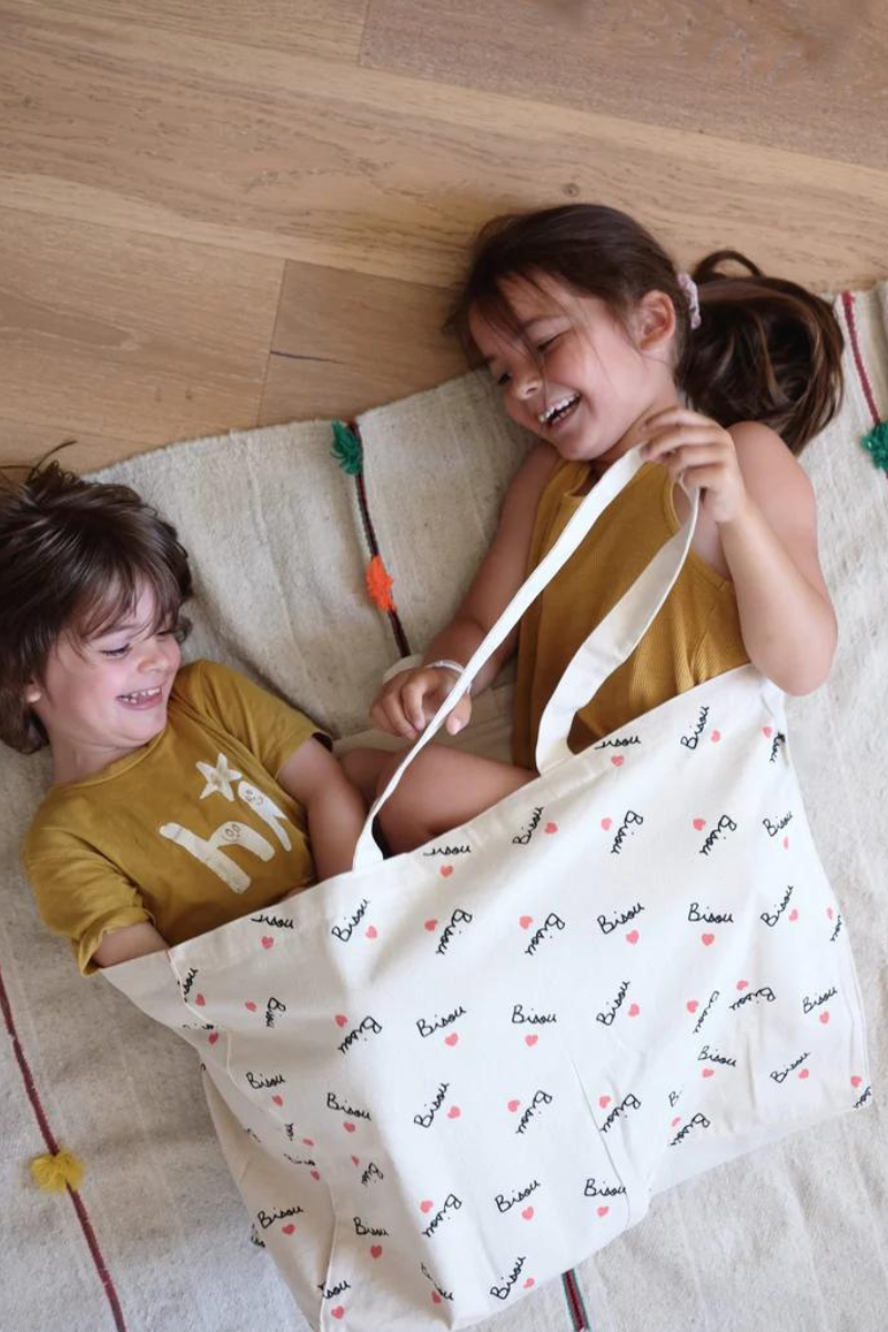 Celui qui ne nous lâche jamais, celui qu'on trimballe everyday, c'est le cabas Bisou.