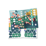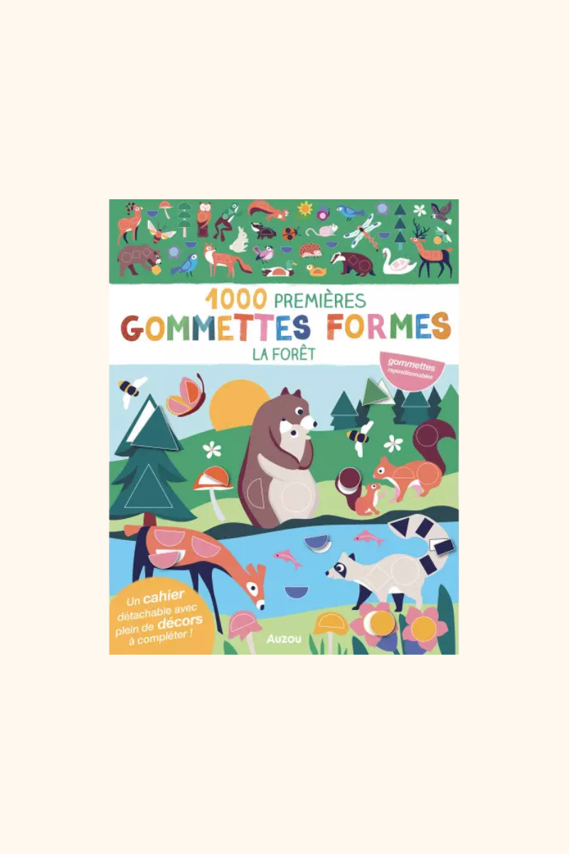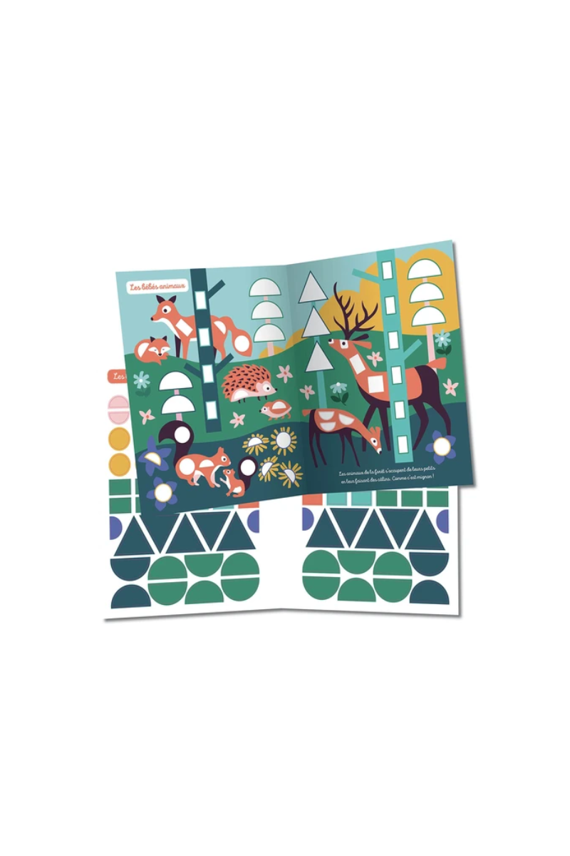 Un cahier rempli de couleurs et de nature pour découvrir la forêt tout en s’amusant ! À l’intérieur, plus de 1000 gommettes de formes géométriques à coller pour compléter de jolis décors détachables : la rivière, le lac, la montagne, les terriers et bien plus encore.