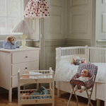 Ce jouet d'imitation se distingue par son design soigné dans le motif Kyoto, avec de jolis bords festonnés qui apportent une touche de douceur. Le siège amovible facilite l'installation et la sortie de bébé poupée, exactement comme une vraie chaise haute. La structure pliable est un vrai plus pour les parents : elle se range facilement quand le jeu est terminé, sans encombrer la chambre ou l'espace de jeu.