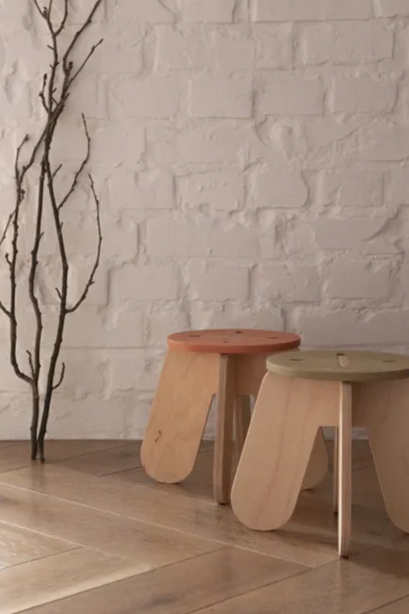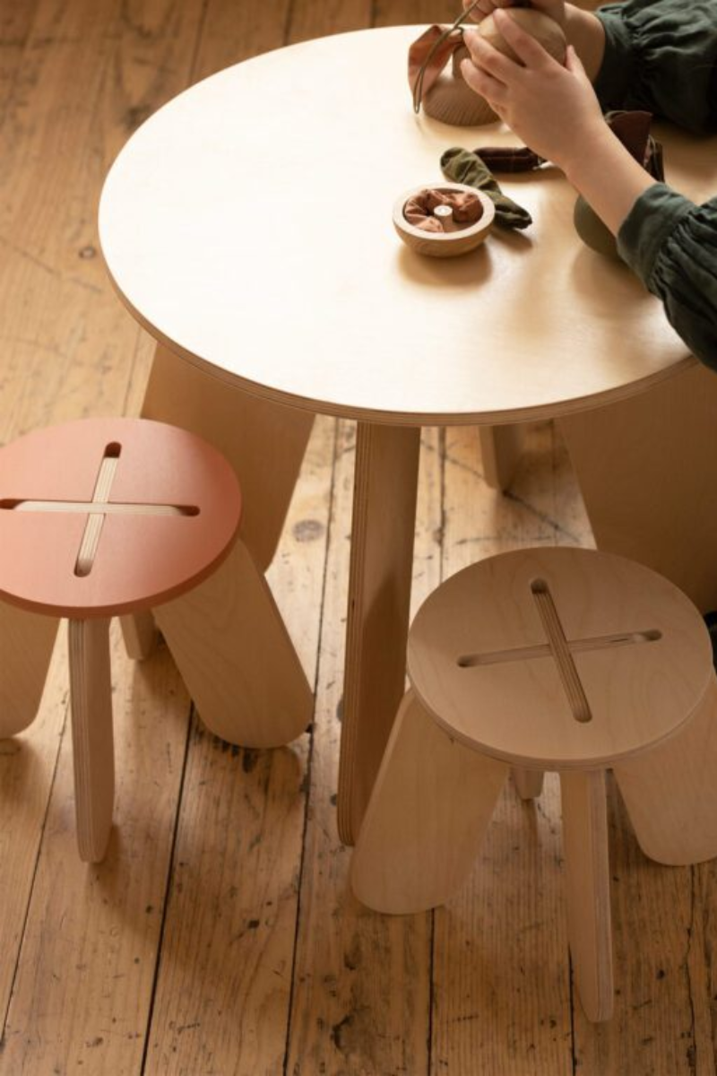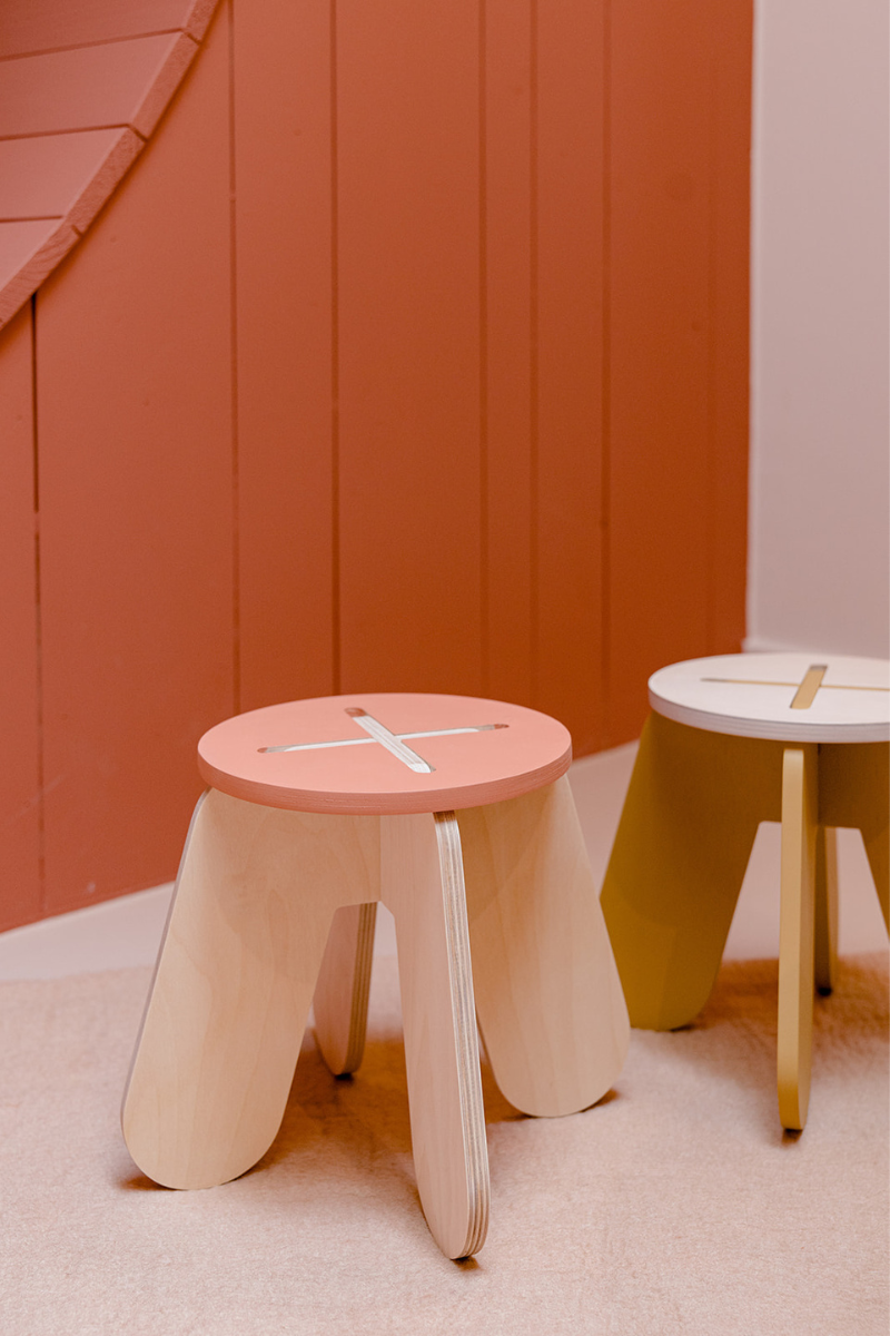 Babai vous propose une jolie chaise pour enfant au design unique et aux teintes chaudes : naturelle et terracotta.