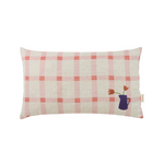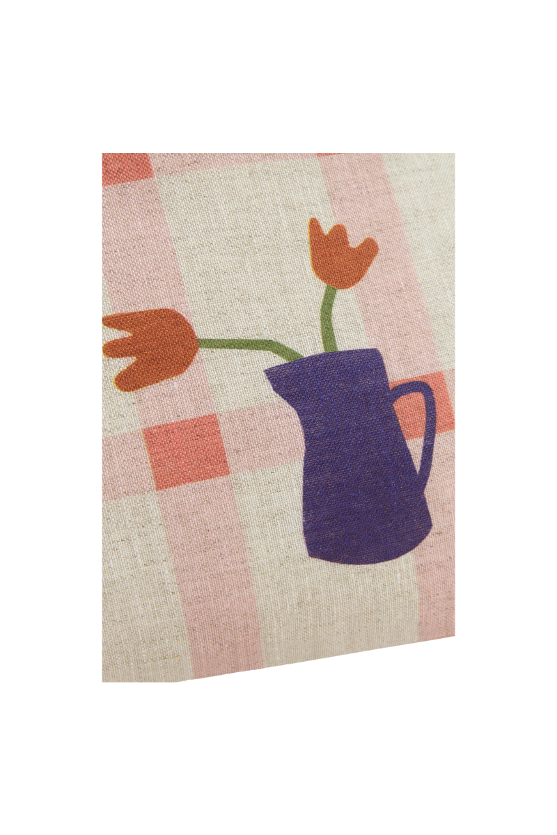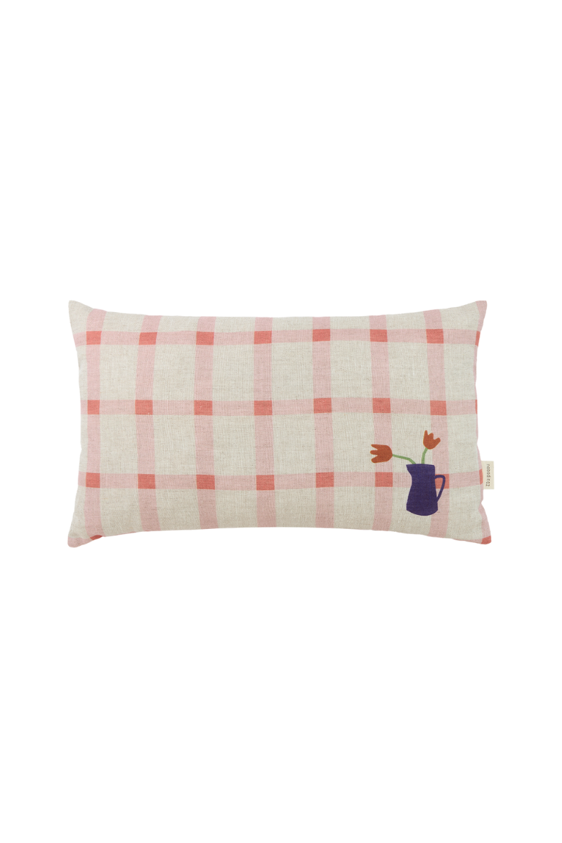 Coussin rectangulaire en lin français "Vibes" - Tulipes roses à carreaux | NOBODINOZ