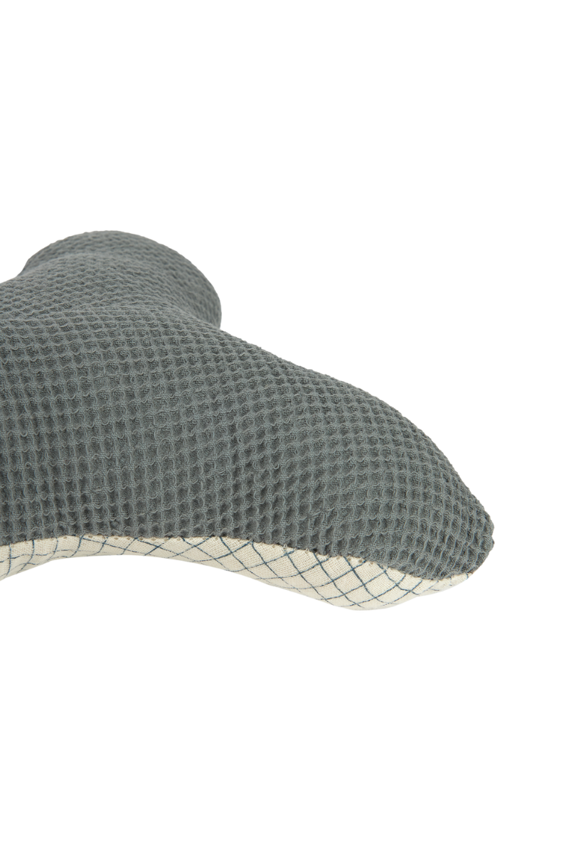 Ce coussin baleine, en nid d'abeille texturé, apporte une dimension tactile unique, stimulant la curiosité et le sens du toucher de votre enfant.