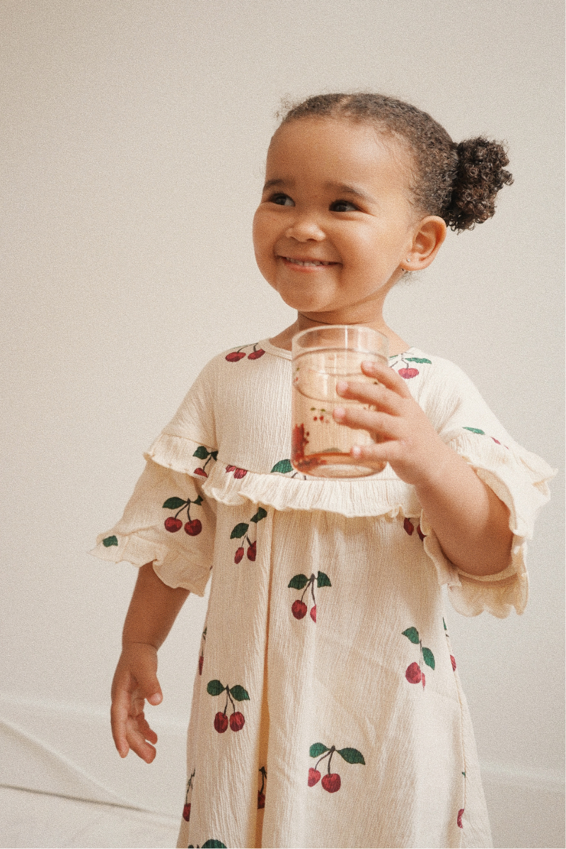 On craque pour ce joli duo de gobelets à paillettes édition "cherry" de la marque Konges Sløjd. Le repas de votre mini brillera de mille feux.