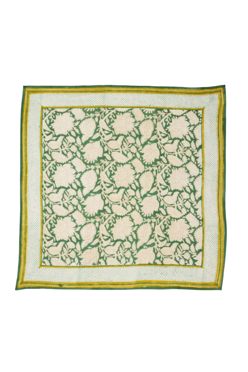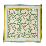 Foulard imprimé « à l’indienne » selon la méthode du blockprint, de la marque Bonheur Du Jour. Tissu tout doux pur coton qui mesure 60 sur 60 cm.