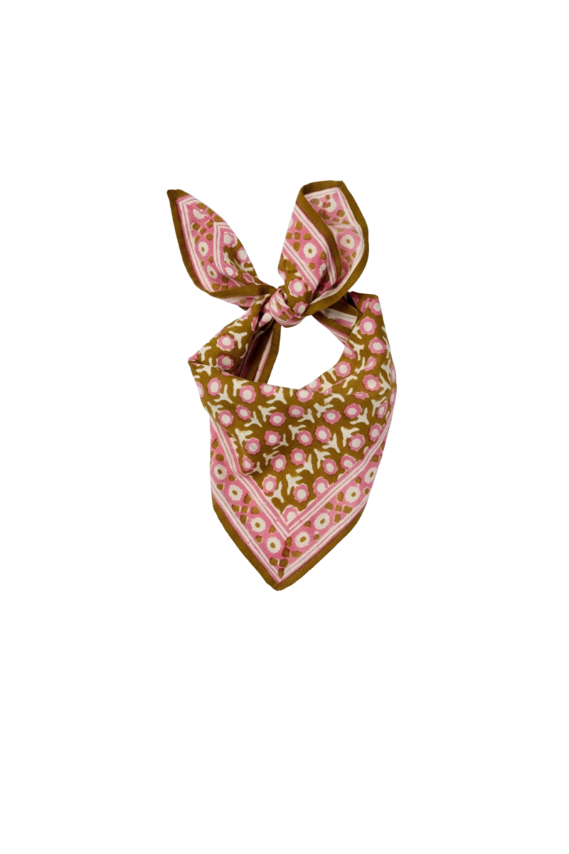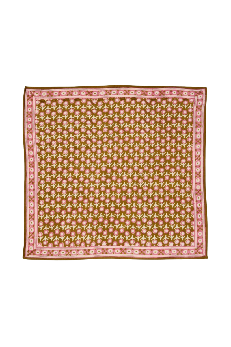 Foulard imprimé « à l’indienne » selon la méthode du blockprint, de la marque Bonheur Du Jour. Tissu tout doux pur coton qui mesure 65 sur 65 cm.