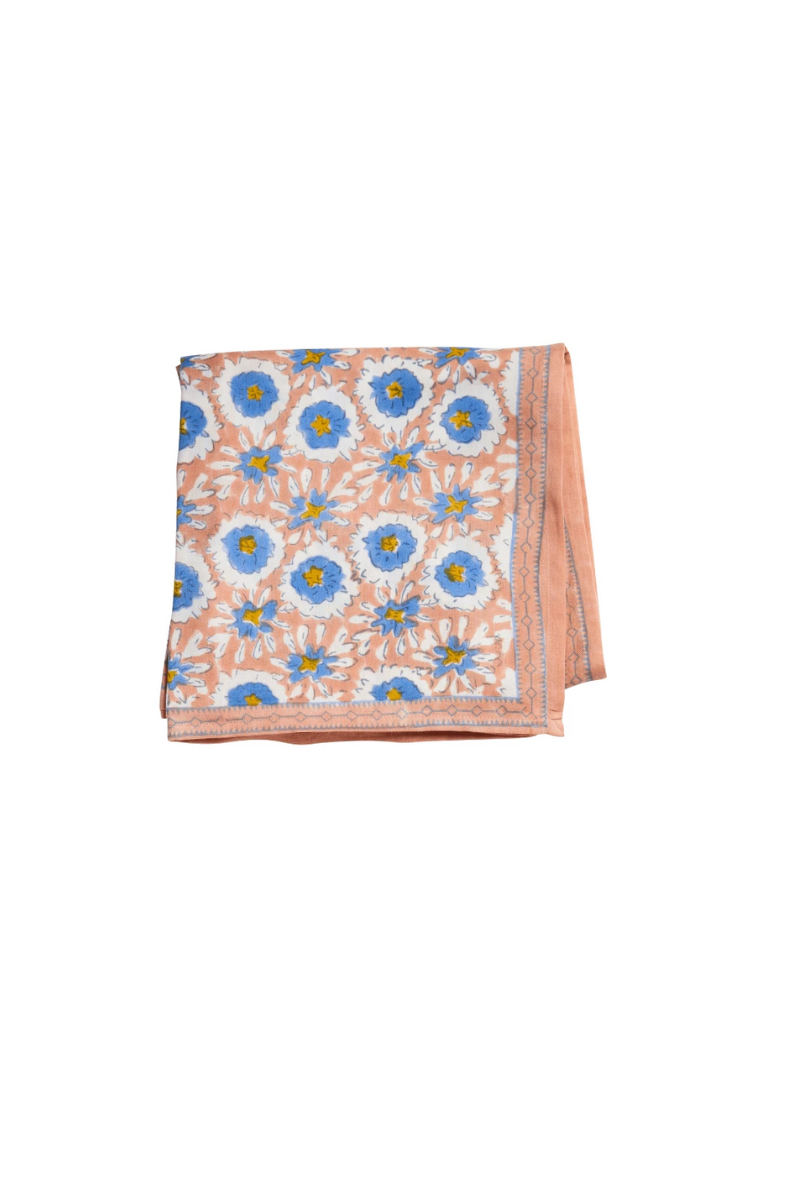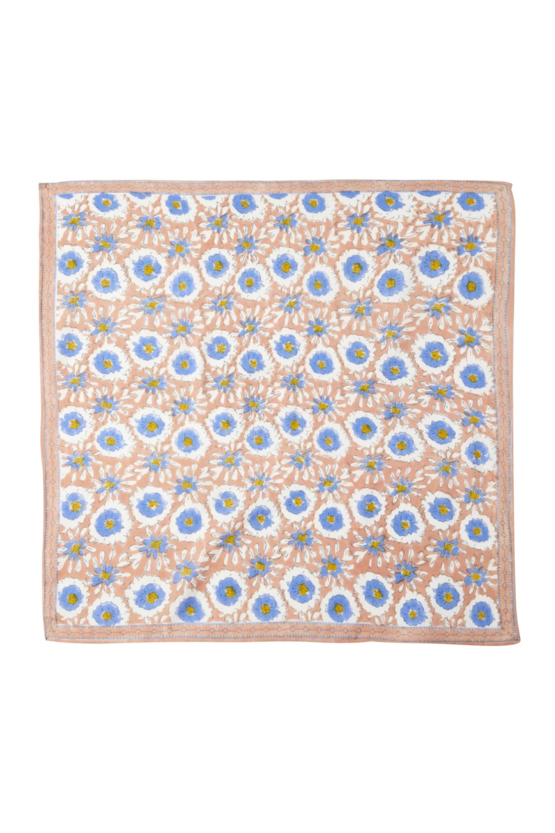 Foulard imprimé « à l’indienne » selon la méthode du blockprint, de la marque Bonheur Du Jour. Tissu tout doux pur coton qui mesure 60 sur 60 cm.