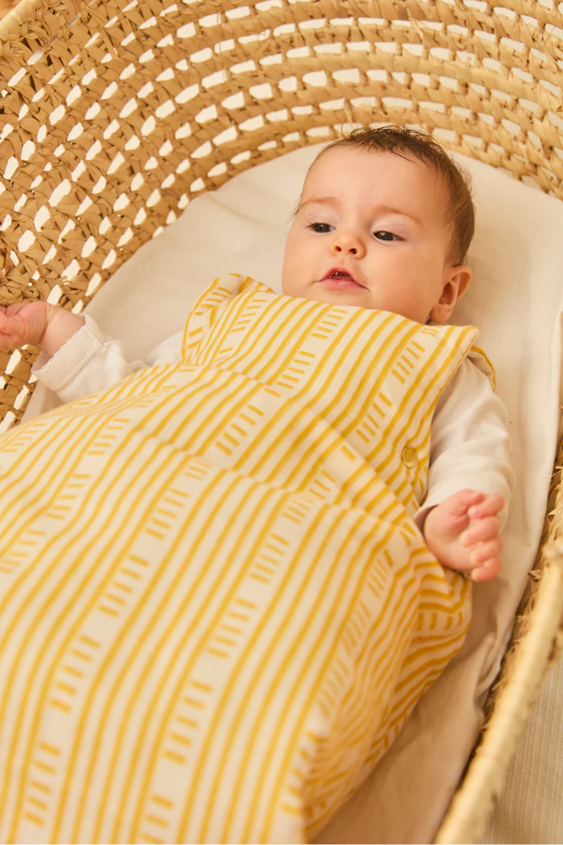 Optez pour cette magnifique gigoteuse évolutive à l'incroyable confort ! À la fois douce et moelleuse, elle assurera une nuit paisible à votre mini. Cette turbulette est fabriquée en coton biologique au Portugal.