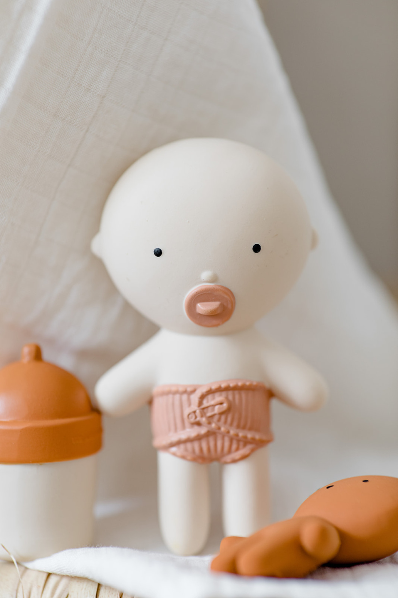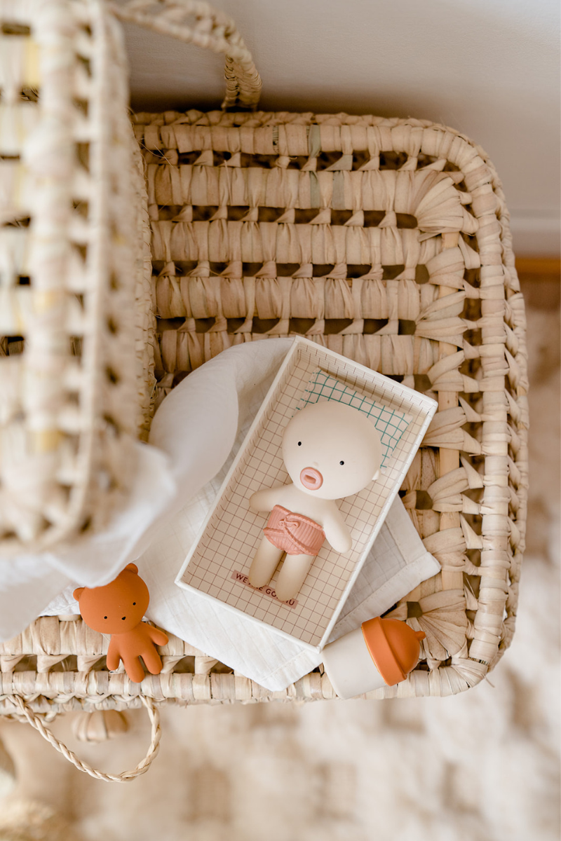 Fabriquée à la main, quelques petites irrégularités peuvent apparaître sur la poupée. Tout le charme d'un produit unique que nous aimons chez Poesy !