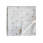 Ce grand lange en mousseline de chez Mushie est multifonction : emmaillotage, bavoir, doudou, couverture légère. Fabriqué à partir de coton 100% biologique, il est prélavée pour plus de douceur contre la peau délicate de bébé.