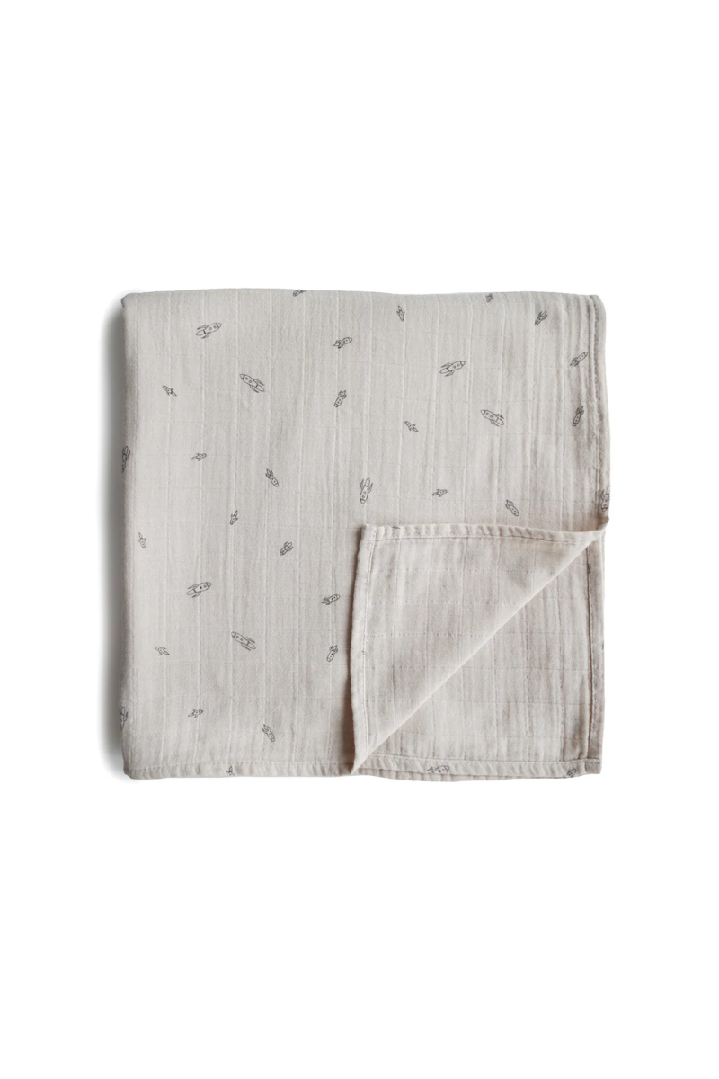 Ce grand lange en mousseline de chez Mushie est multifonction : emmaillotage, bavoir, doudou, couverture légère. Fabriqué à partir de coton 100% biologique, il est prélavée pour plus de douceur contre la peau délicate de bébé.