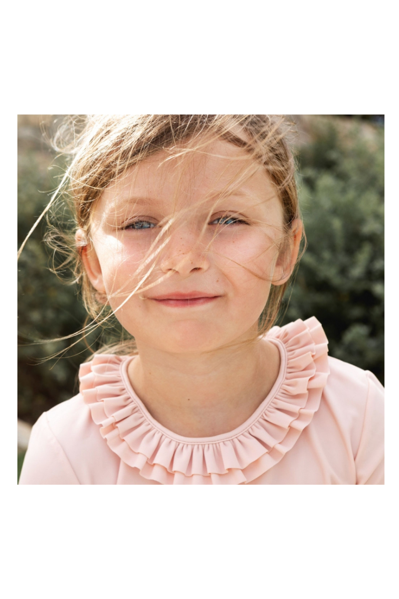 Sa teinte rose poudré, tendre et tendre, convient à toutes les petites peaux dorées par le soleil lumineux. Fabriqué à partir d'un tissu anti-UV certifié UPF 50+ , ce maillot de bain protège efficacement des rayons du soleil, tout en assurant un confort optimal grâce à sa matière douce et extensible.