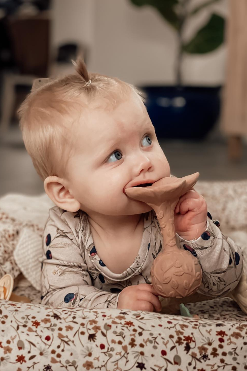 Conçu pour apaiser les gencives douloureuses, cet anneau de dentition est fabriqué en hévéa sans produits chimiques. Sa texture souple est parfaite pour les bouches sensibles, son relief stimule les sens et son design permet une bonne préhension par votre enfant.