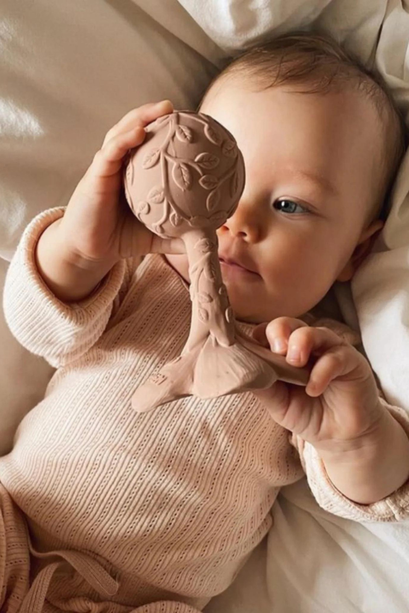 Hochet de dentition - Fleur Plumeria rose | NATRUBA