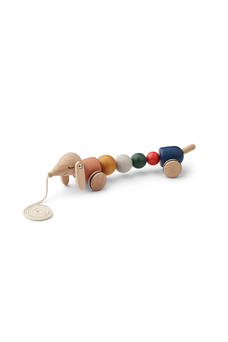 Le jouet en bois à tirer de chez Liewood, à l'effigie d'un adorable teckel, est un classique indémodable qui fera le bonheur des enfants. Avec ses mouvements ondulatoires ludiques lorsqu'il est promené, il devient vite un compagnon de jeu fidèle.