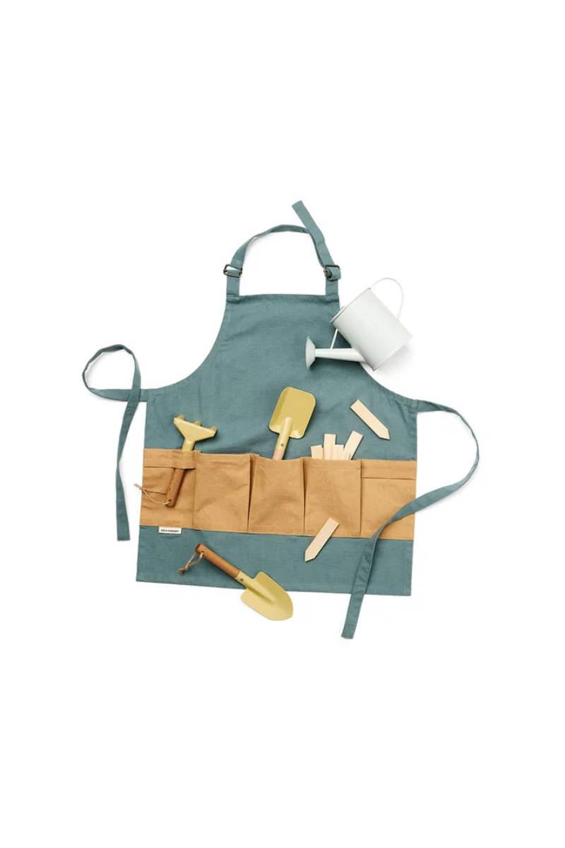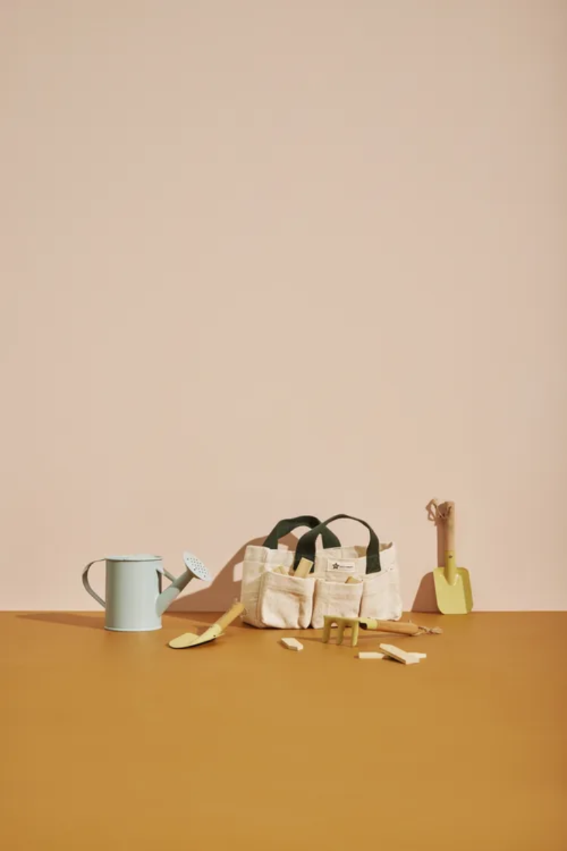 Ce set d'outils de jardinage comprend tous les outils indispensables pour de belles aventures de jardinage : un arrosoir, une truelle, un râteau et une pelle. Huit bâtonnets en bois qui peuvent être étiquetés avec le nom des plantes cultivées.