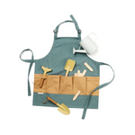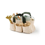 L'ensemble est livré dans un sac en toile de coton solide, doté de trois poches latérales. Le sac en toile de coton permet de transporter et de ranger de manière pratique et organisée. Les outils sont robustes et conçus pour que les petites mains puissent les manipuler facilement.