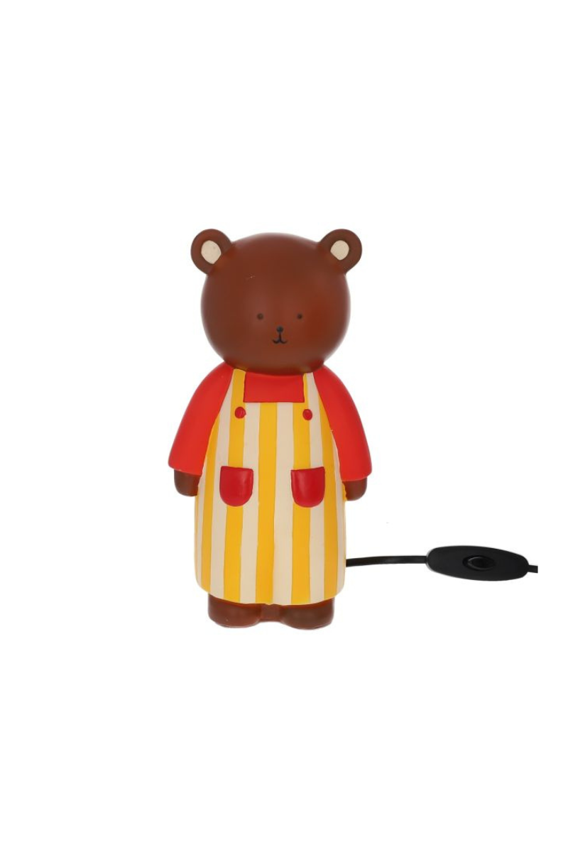 Résistante et légère, elle est également sûre pour une utilisation quotidienne et sera idéale comme petite lampe de chevet pour les moments de lecture du soir ou jeux calmes dans la chambre. Grâce à sa lumière douce, le luminaire chambre ours fera craquer votre enfant avec son apparence adorable de petit ours brun habillé en salopette rouge.