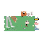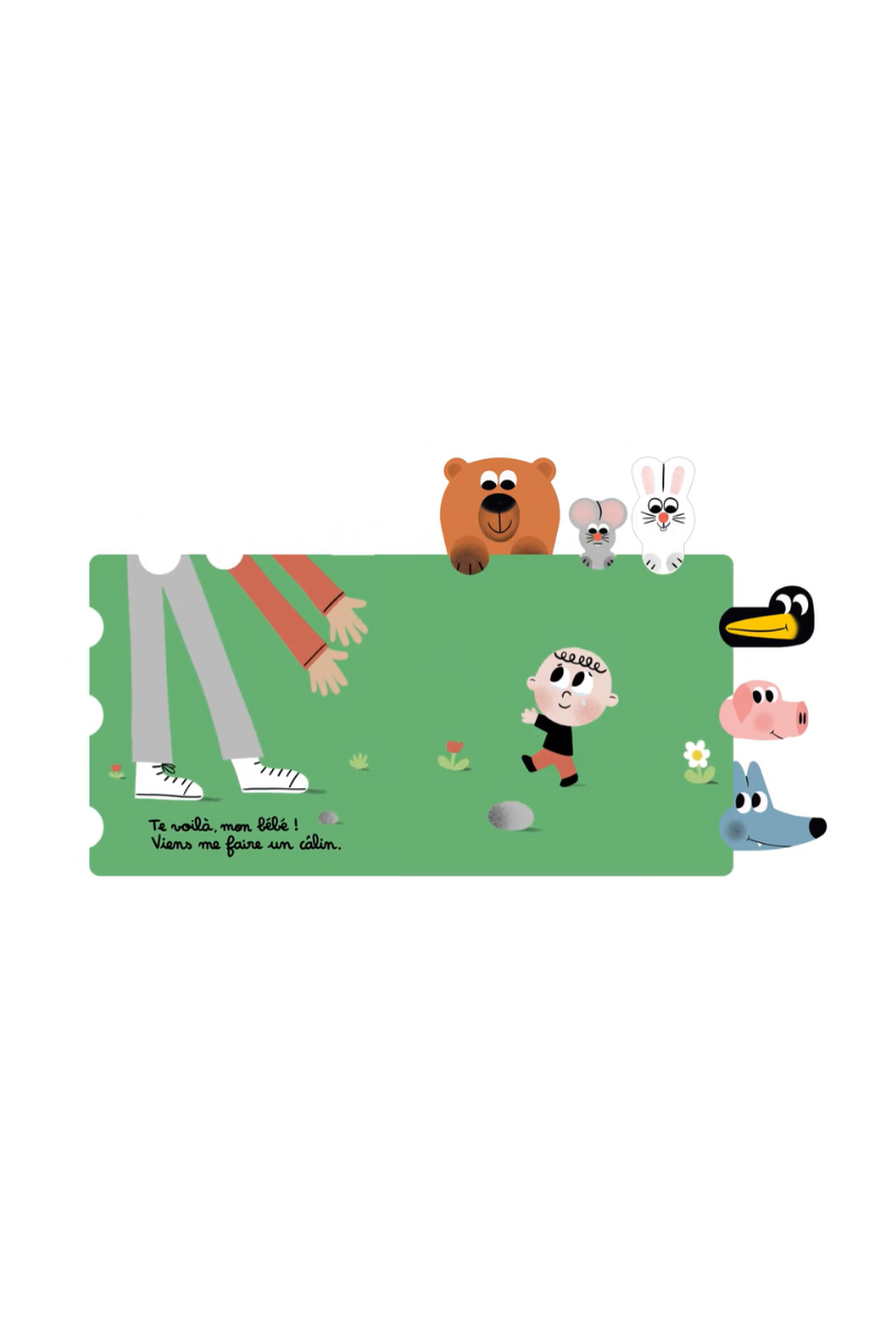 Grâce à un système de tirettes faciles à manipuler, l’enfant fait apparaître des animaux rigolos tout autour du livre. Un joli jeu d’observation qui invite à rire et à s’émerveiller à chaque page tournée.