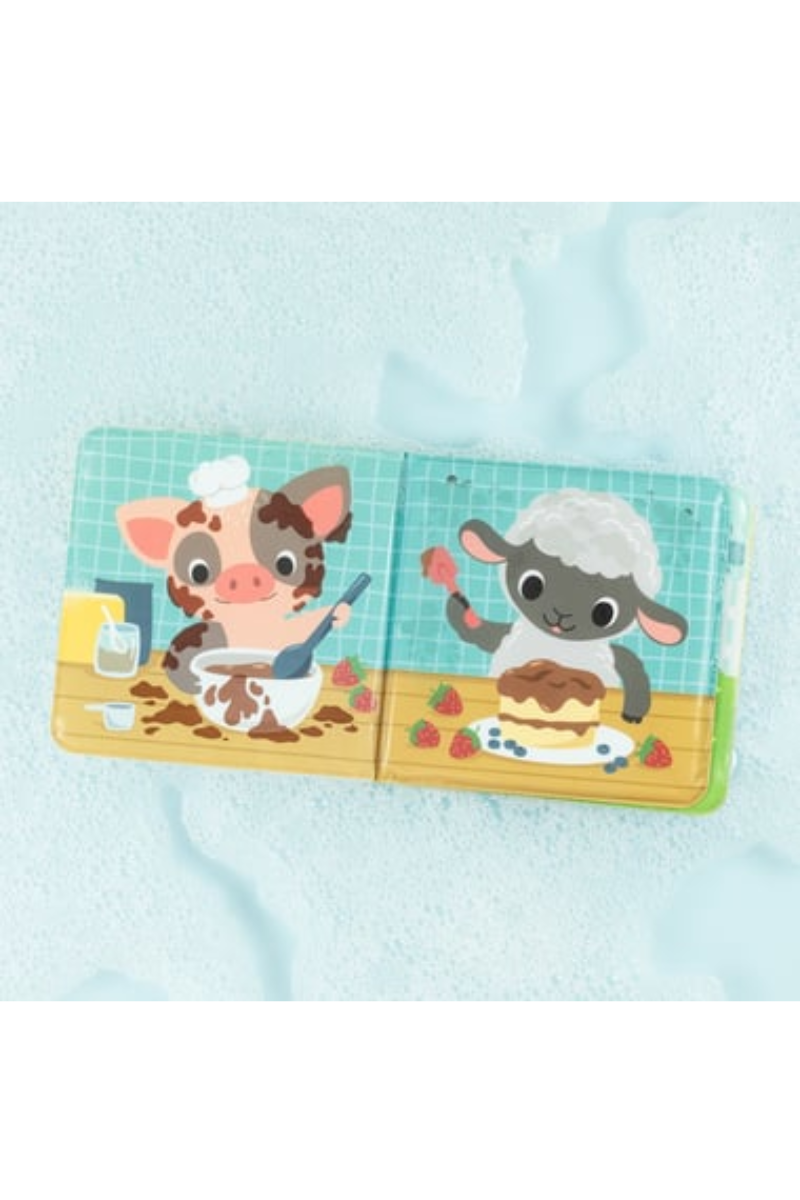Ce livre de bain tout doux transporte les tout-petits à la ferme, à la rencontre d’animaux espiègles qu’ils pourront laver encore et encore. Grâce à une encre thermosensible, les tâches de boue disparaissent comme par magie au contact de l’eau chaude… puis réapparaissent lorsque l’eau refroidit, pour rejouer la scène à l’infini !