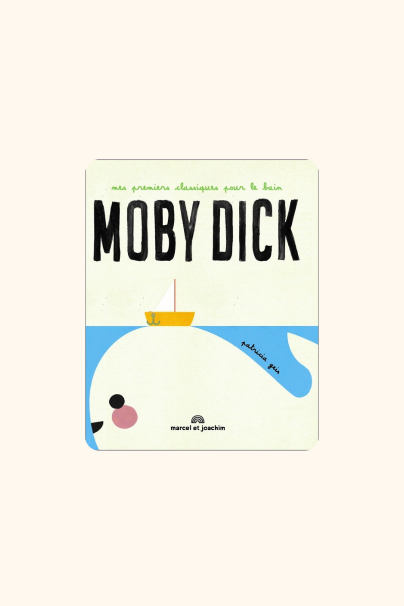 Un livre de bain pour bébé drôle et plein de tendresse, inspiré du célèbre roman Moby Dick ! Grâce à ses illustrations colorées et à son format adapté aux petites mains, bébé découvre l’histoire du capitaine Achab et de la mystérieuse baleine blanche, tout en s’amusant dans son bain.