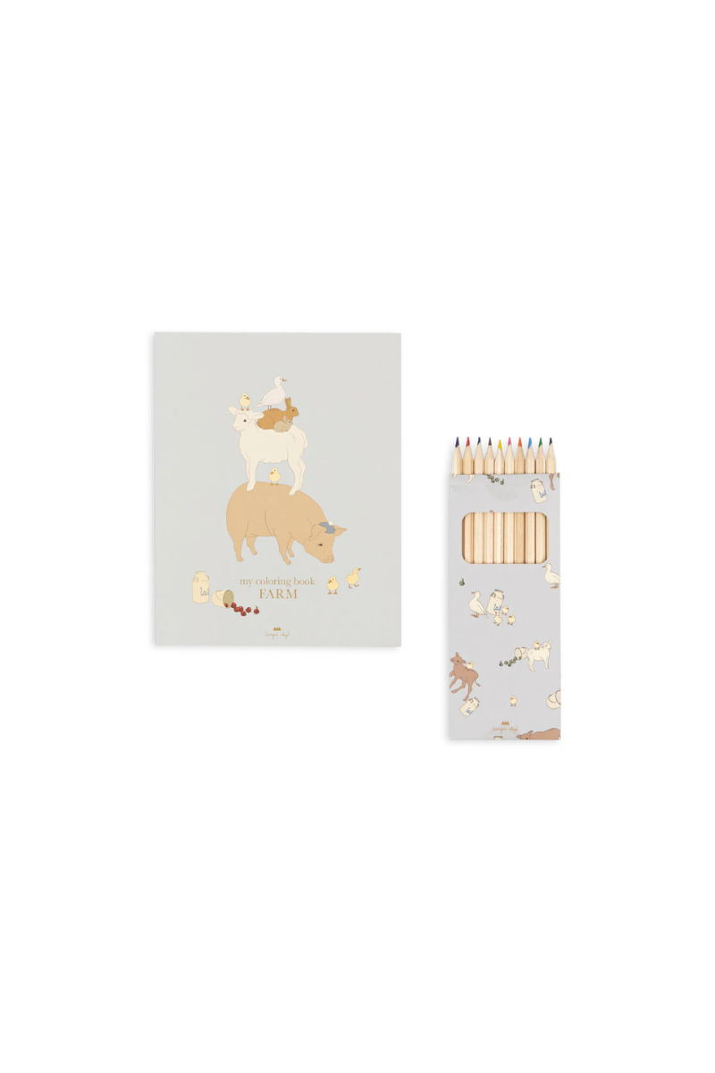 Livre de coloriage et crayons de couleurs "Farm" | KONGES SLOJD