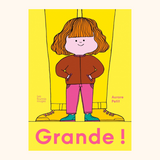 Après l’expérience de la maternité, l’arrivée du second enfant et le lien fraternel, Aurore Petit continue son travail autobiographie et se concentre, cette fois, sur sa « petite grande fille ». Avec son regard tendre, Aurore Petit décrit ce moment délicat où les enfants gagnent en indépendance et repoussent toujours plus loin les limites pour explorer le monde qui les entoure. La conscience de soi, l’opposition et l’affirmation de ses capacités et de sa personnalité poussent la petite fille à revendiquer sa place et son autonomie. GRANDE ! Vraiment ? Car, représenté hors champ, l’adulte est toujours présent pour l’entourer et l’accompagner sur ce chemin.