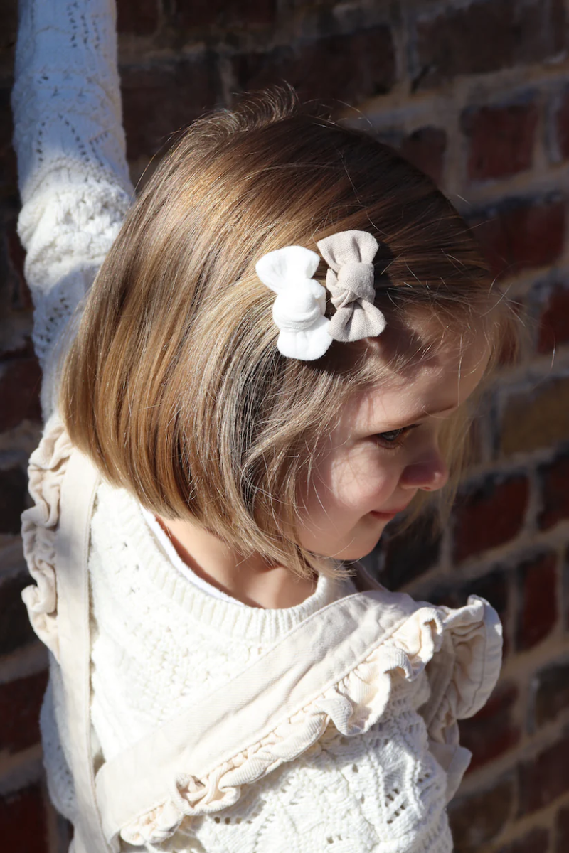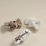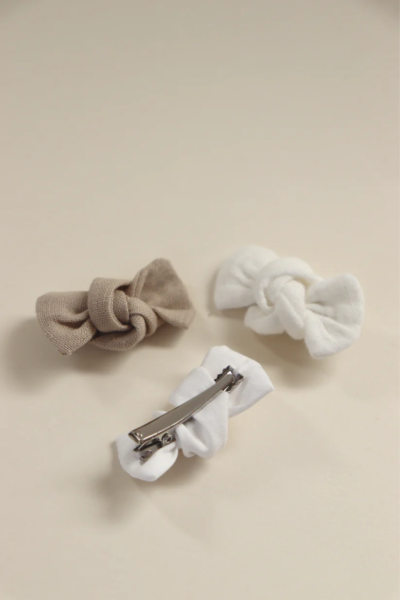 Composition du lot : Assortiment de 3 barrettes Abby: gaze écru, lin lavé beige et popeline de coton blanche.