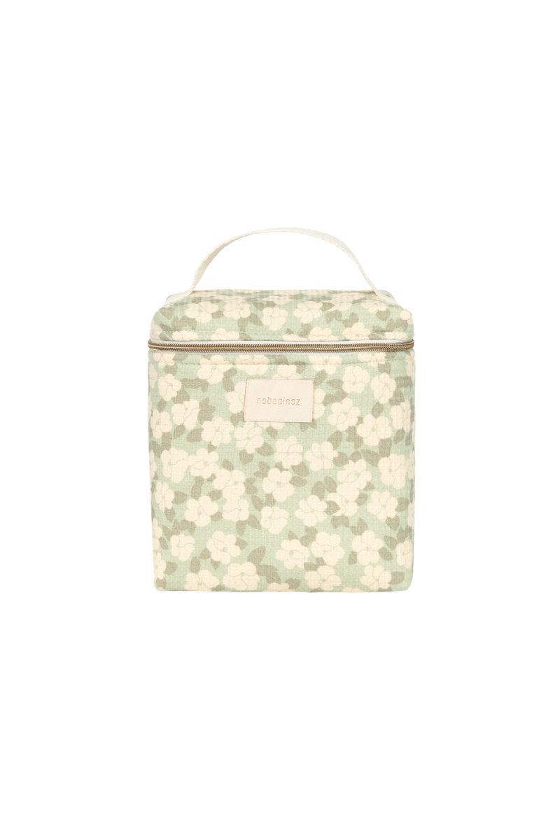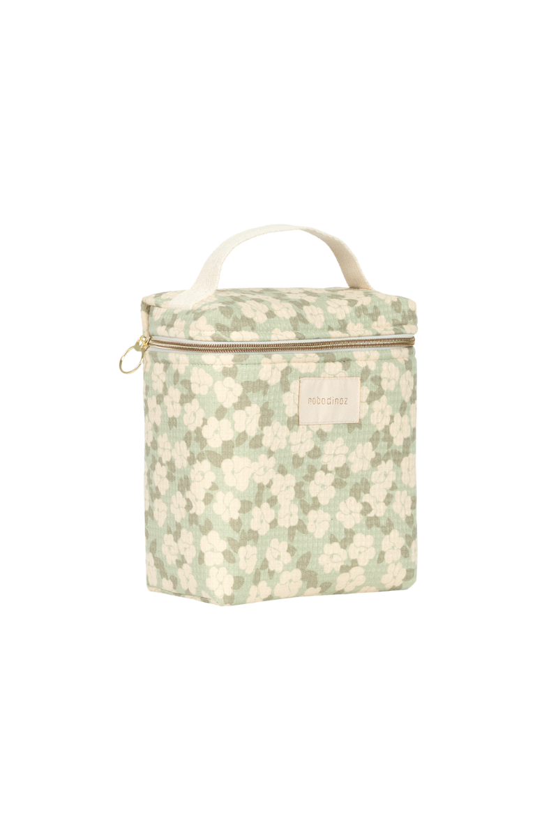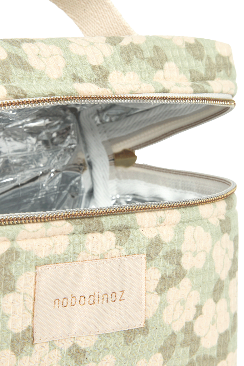 Craquez pour ce lunch bag isotherme avec son joli imprimé fleuris vert de chez Nobodinoz. Parfait pour transporter les biberons, les petits pots, les bouteilles ou encore le goûter de votre enfant. Ce sac isotherme en coton biologique texture nid d'abeille conservera les aliments à la bonne température (chaud ou froid) grâce à sa doublure isotherme.