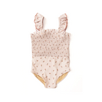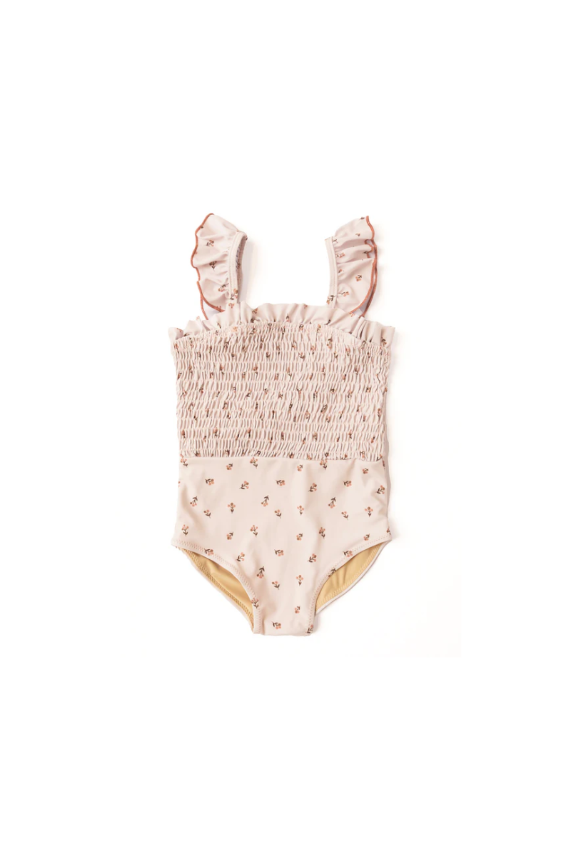 Avec ses petits motifs floraux terracotta et son tissu vieux rose poudré, ce joli maillot une-pièce Stella respire la douceur et l’élégance. On craque pour son haut smocké et ses bretelles à volants soulignées d’un délicat liseré contrastant, qui apportent une touche raffinée et pleine de charme.