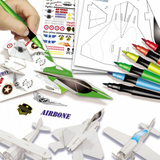 Un coffret créatif pour tous les petits passionnés d’aviation ! Les enfants pourront assembler 3 maquettes en carton prédécoupé, puis les décorer selon leurs envies. Ils utilisent les feutres pinceaux et les autocollants fournis pour créer des modèles uniques.