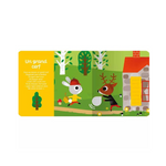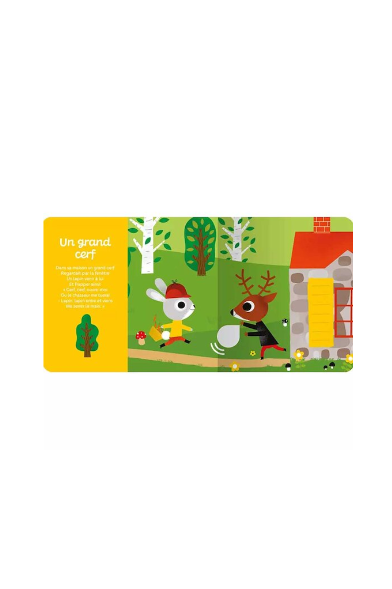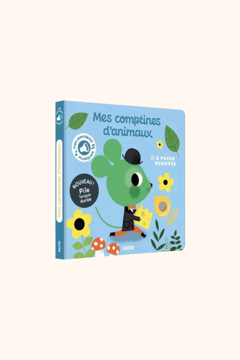 Dans « Mes comptines d’animaux », les petits retrouvent 6 chansons célèbres inspirées du monde animal : Une souris verte, Un grand cerf, Coucou hibou, Un éléphant qui se balançait, Promenons-nous dans les bois et Ah ! Les crocodiles. Chaque double page mêle son, image et interaction, pour faire de la lecture un moment de jeu et de plaisir.