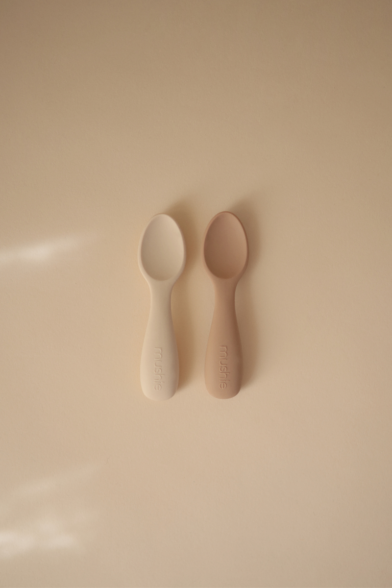 Duo de mini cuillères d'apprentissage - Beige / Sable | MUSHIE