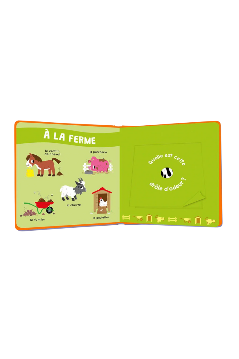 Dans cette édition pleine d’humour, l’enfant découvre des odeurs du quotidien pas toujours très agréables : oignons, lait périmé, chaussettes sales, poubelle, bouse de vache ou mouffette… Un livre drôle et surprenant qui fera sourire petits et grands !