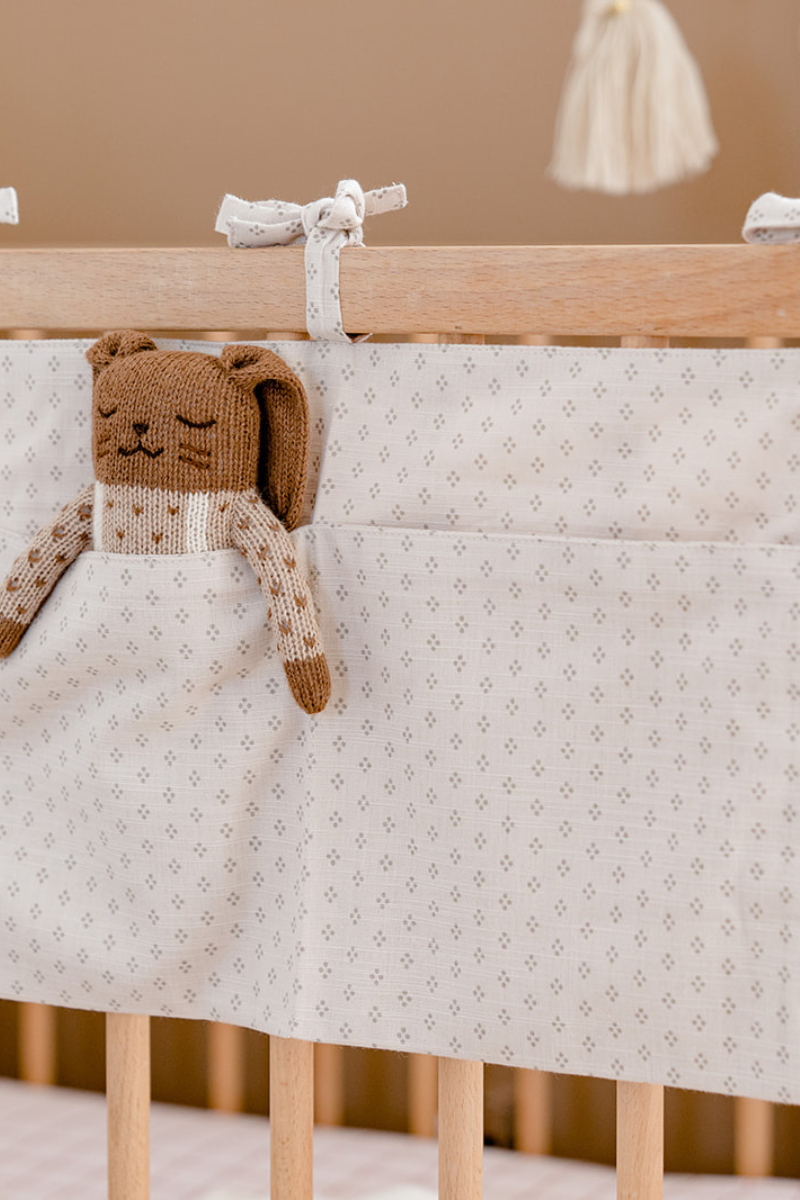 Une si jolie pochette de lit pour ranger tétines, petits doudous et gourdes. Fixez-la à l'extérieur du lit de votre enfant et vous aurez toujours l'essentiel à portée de main avant d'aller au lit ou au milieu de la nuit.