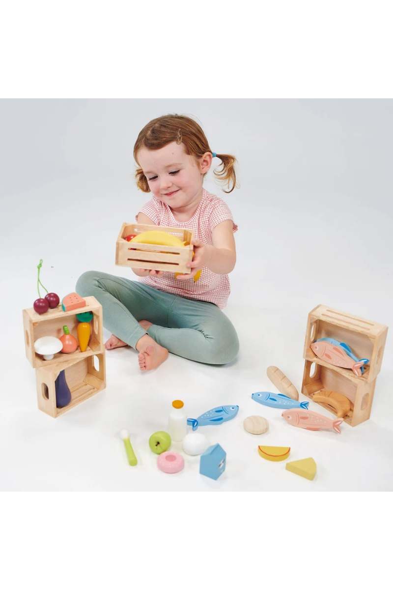 Les enfants pourront s’amuser à les cuisiner, les vendre ou les ranger dans leur panier comme les grands. Fabriqués en bois durable, ces accessoires encouragent les jeux d’imitation, le langage et la créativité tout en développant la motricité fine.