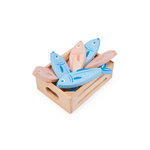 Ce joli petit panier en bois est parfait pour compléter une dînette ou jouer au marché ! Il contient 6 poissons colorés (3 bleus et 3 roses), joliment détaillés et faciles à manipuler pour les petites mains.