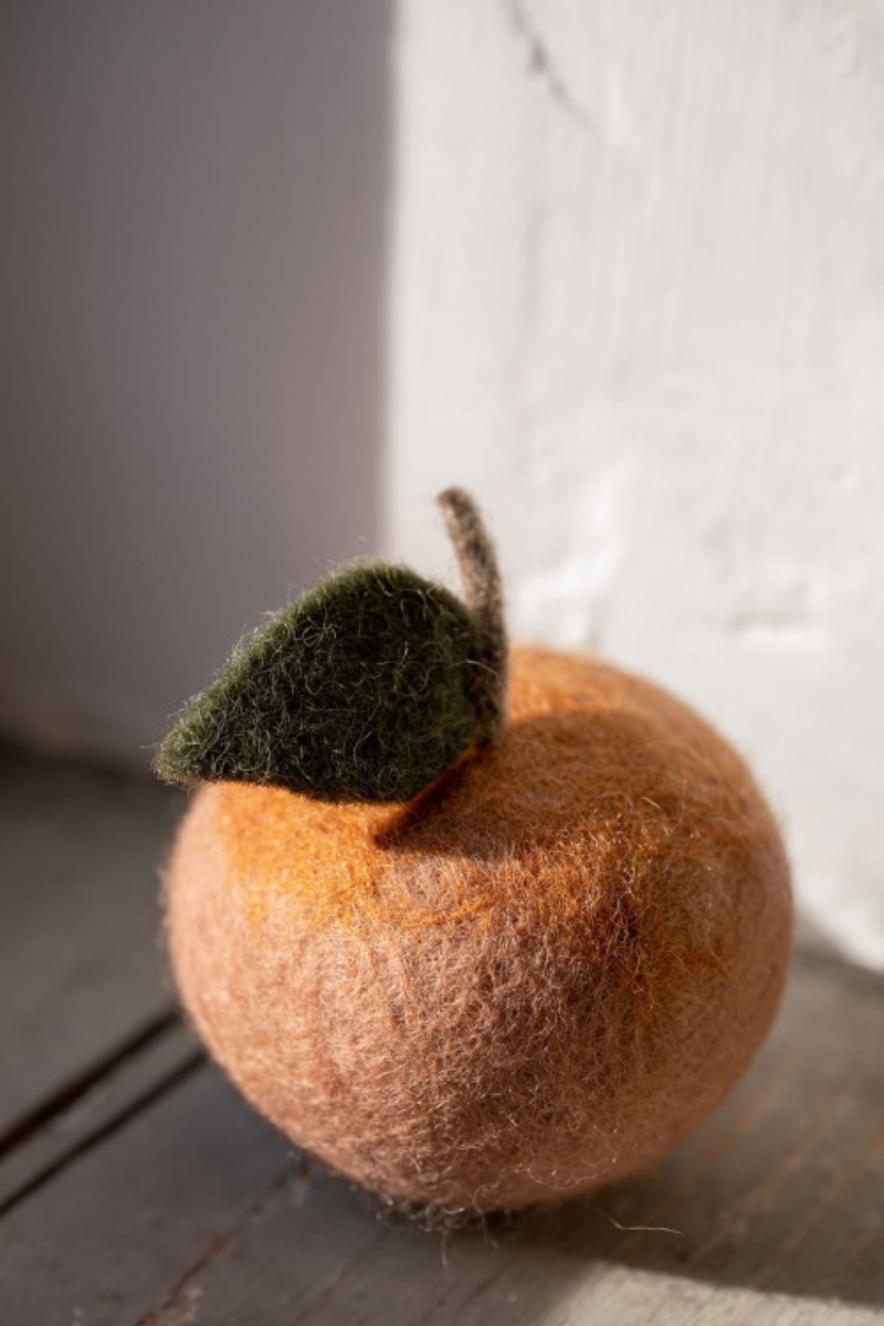 Aussi veloutée que son teint, voici la pêche en laine feutrée de la marque Muskhane ! Ce petit objet de décoration réalisé à la main grâce à leurs artisanes népalaises sera idéal dans une chambre d'enfant au niveau de son coin cuisine pour laisser libre cours à sa créativité.