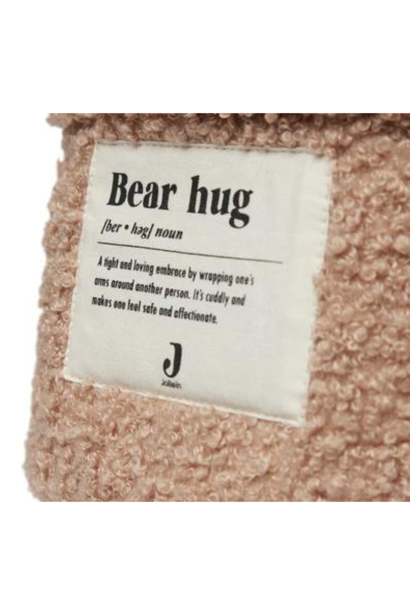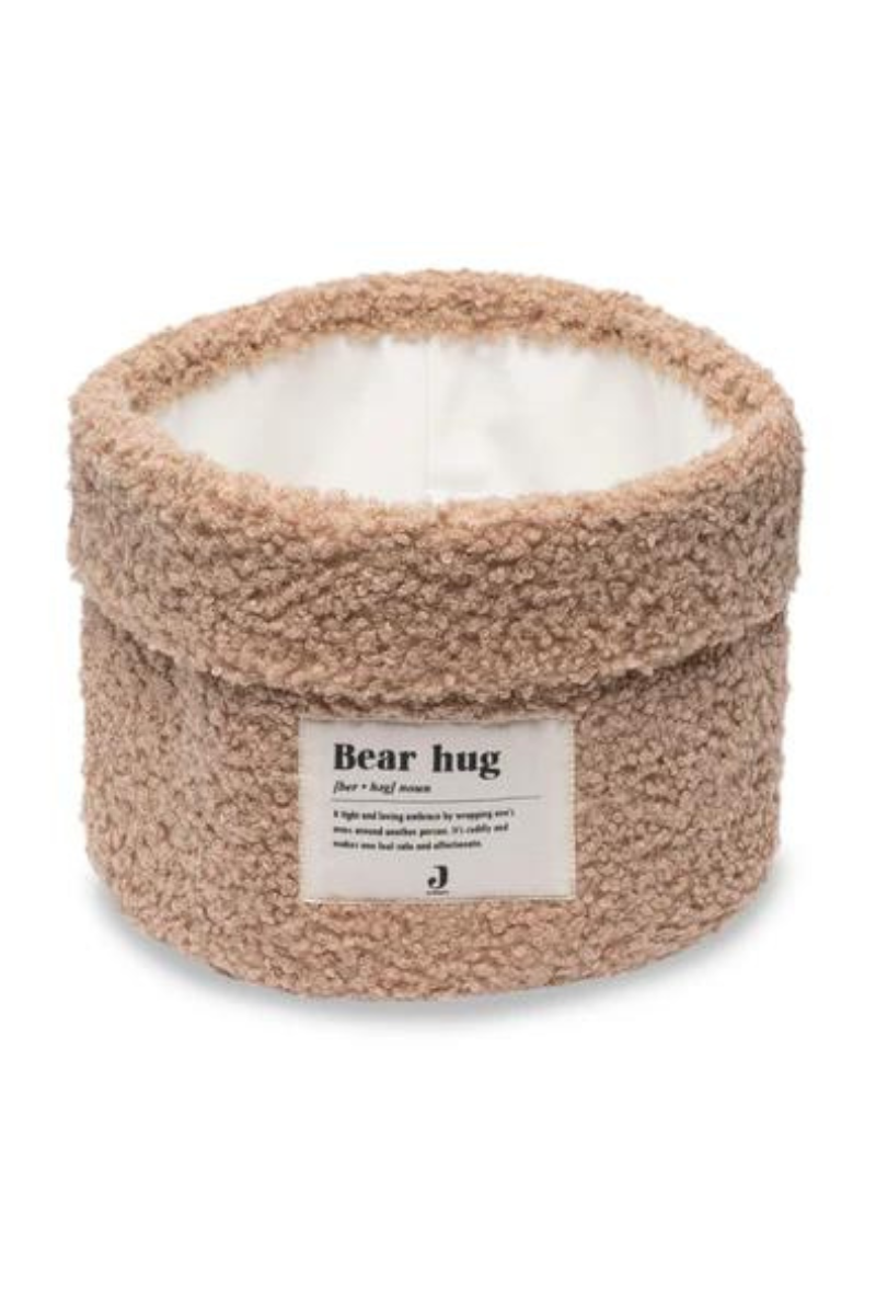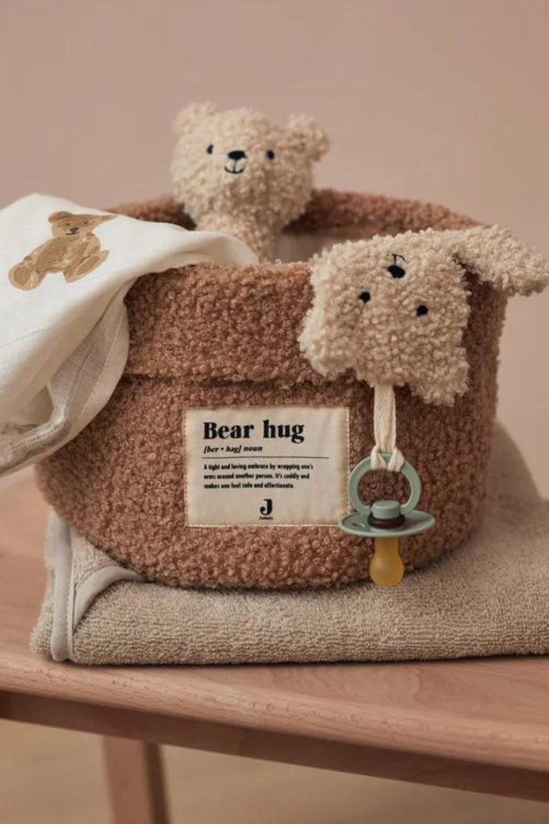 Ce panier de rangement pratique en tissu bouclette doux de Jollein est parfait pour ranger des objets. Sur le devant du panier se trouve l'adorable logo "bear-hug".