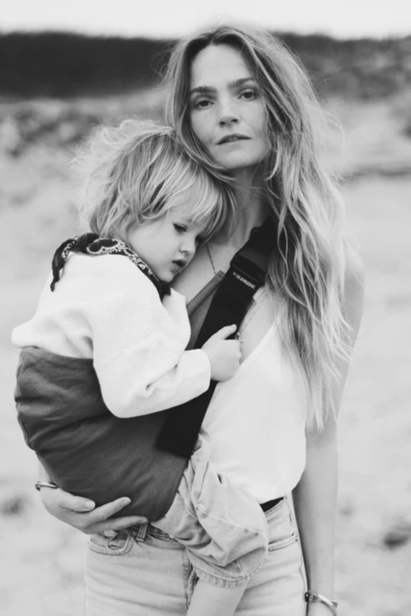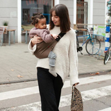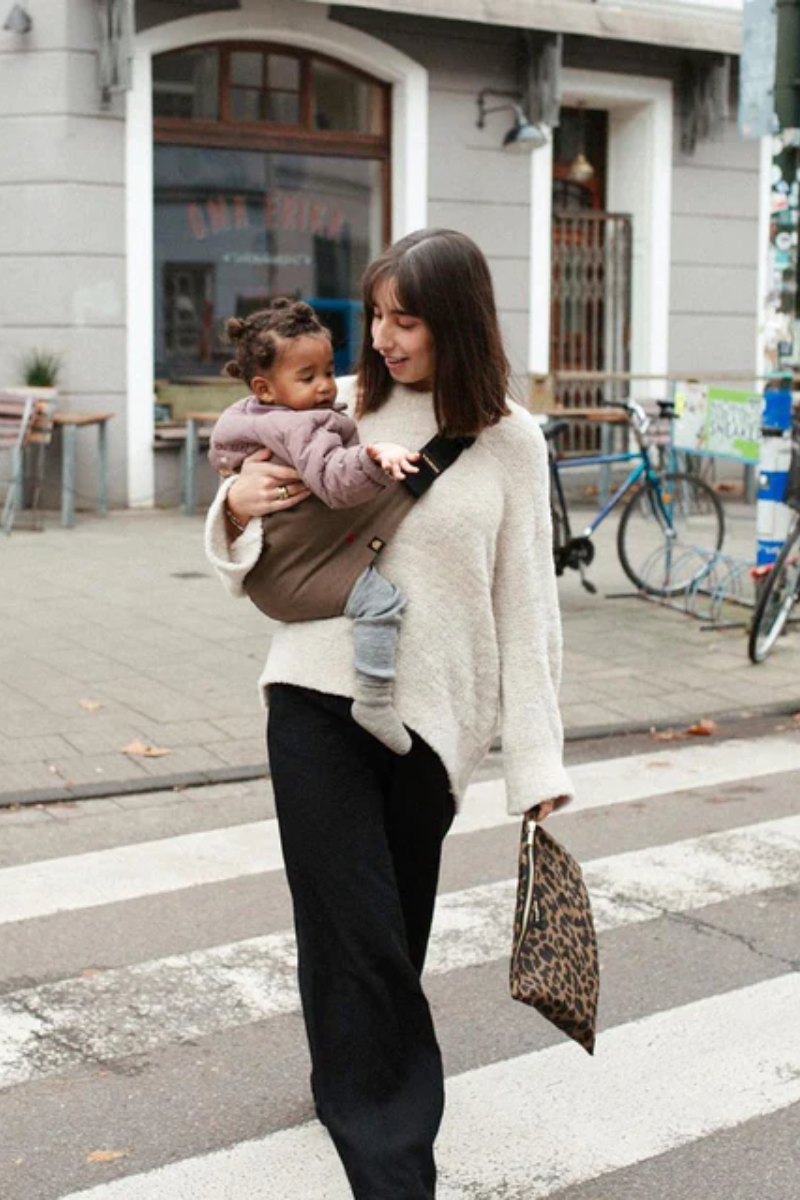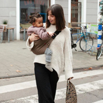 Un porte-bébé latéral unique et tendance, une évolution des porte-bébés traditionnels avant ou arrière. Convient de 9 mois à 4 ans (maximum 20 kg).