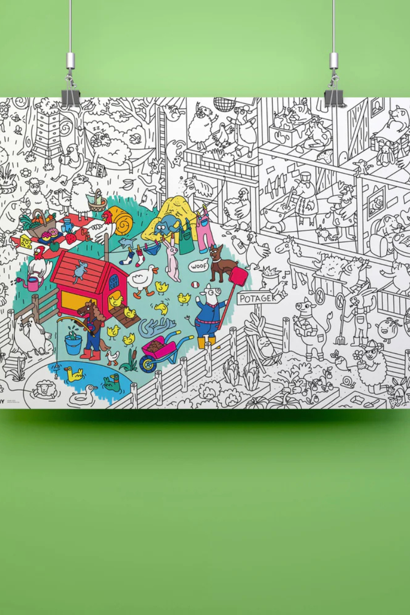 Pour colorier seul ou à plusieurs, à déplier au sol ou à accrocher au mur.
