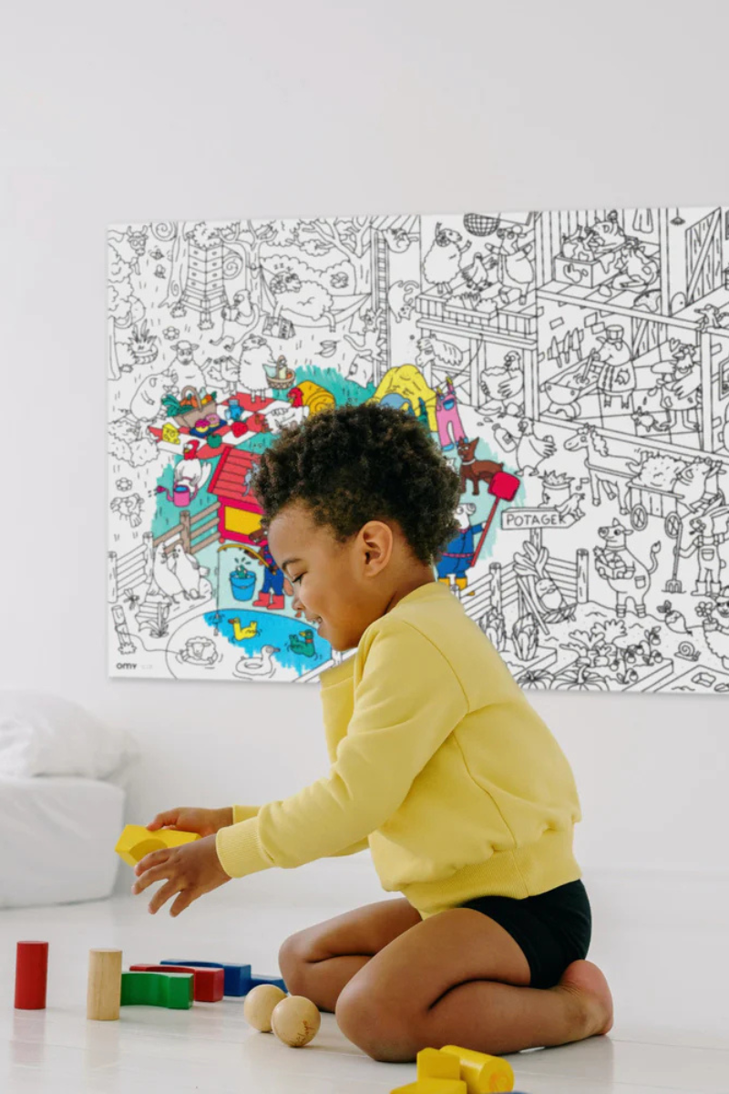 Un grand poster 70x100 cm destiné aux plus petits avec des grandes illustrations pour découvrir tout en coloriant. Un trait plein d’humour et une multitude de détails, ce poster sur le thème de la ferme est un véritable voyage graphique à partager.