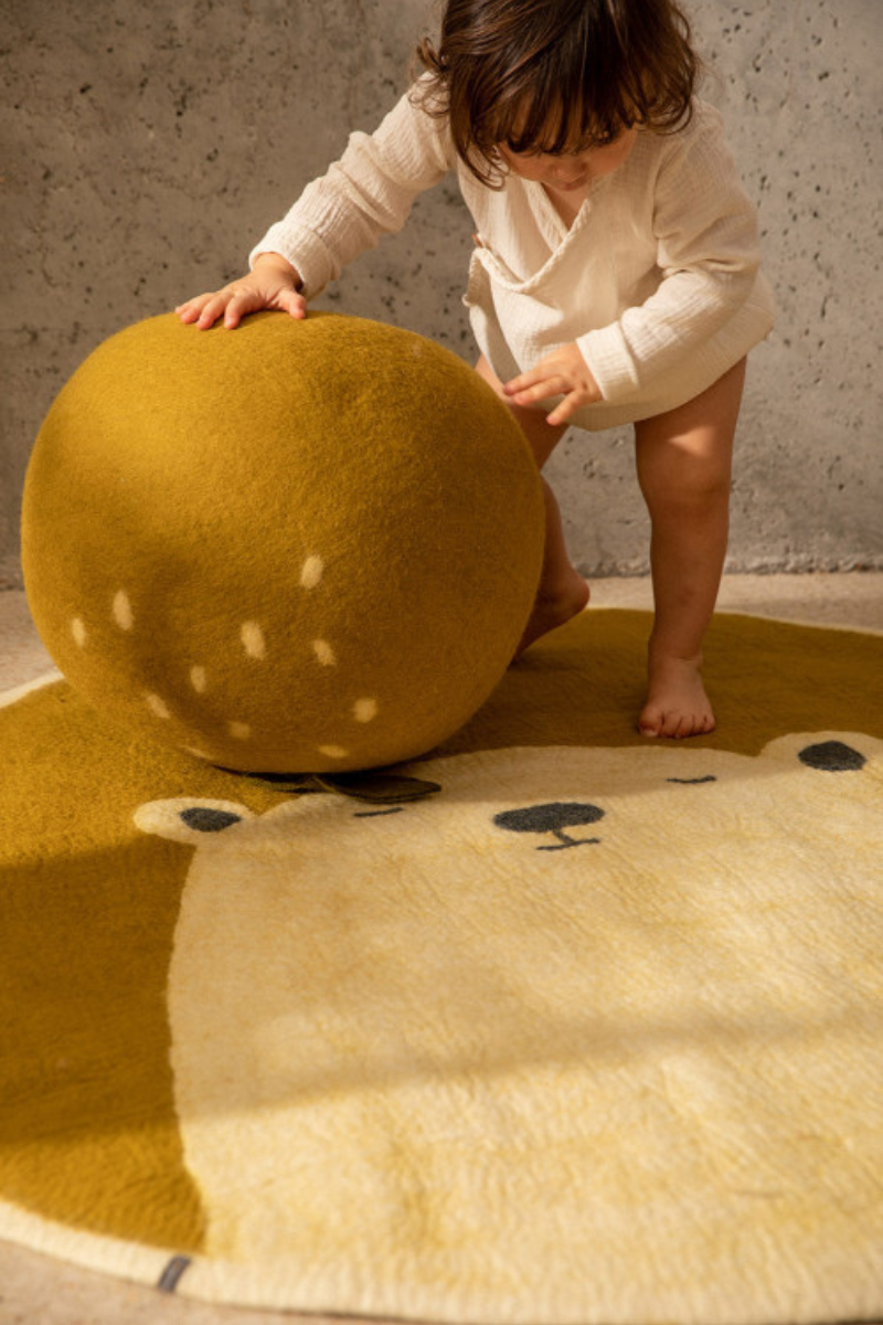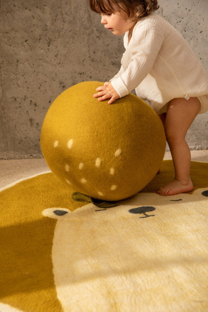 Haut comme trois pommes ! À la fois assise originale et accessoire déco, ce pouf généreux et gourmand en forme de pomme met de la couleur et de la joie dans la maison ! Fabriqué artisanalement au Népal, il est garni de mèches de laine recyclée et recouvert de feutre de laine. Doux et confortable, il s’invite dans la chambre des tout-petits pour une décoration ludique et joyeuse, inspirée de la nature.
