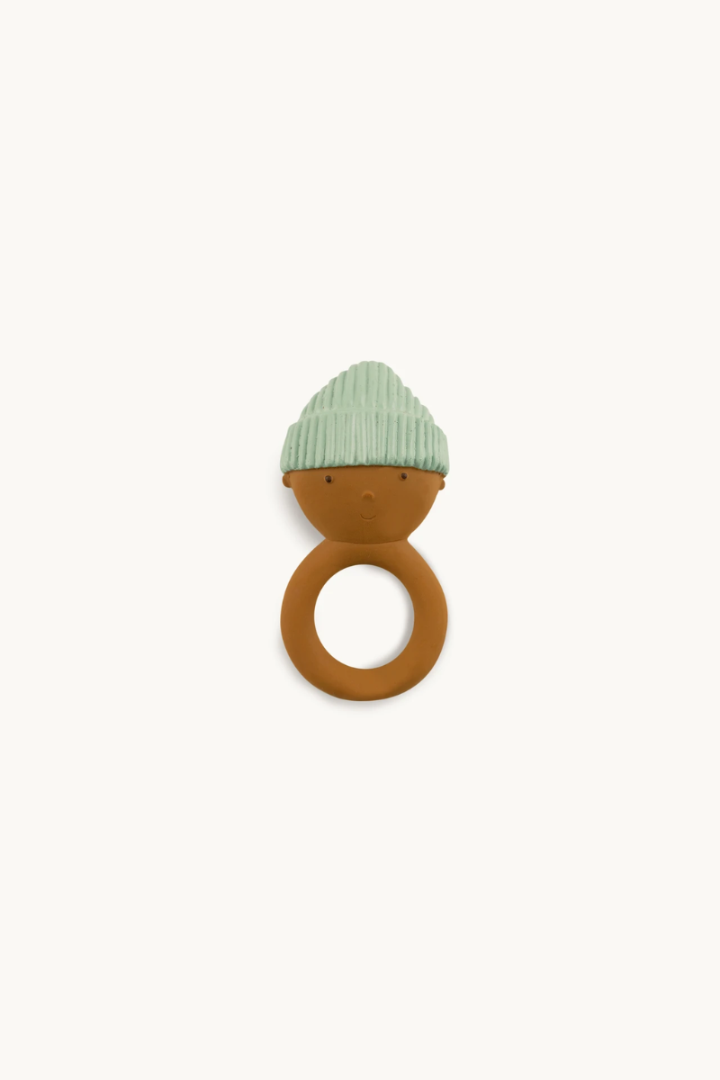 Découvrez l'anneau de dentition en forme de bébé Gommu coloris coco. Fabriqué à partir de sève blanche d’hévéa et de peinture de qualité alimentaire biologique, le Ring baby est sans danger pour bébé qui pourra le grignoter pendant des heures.