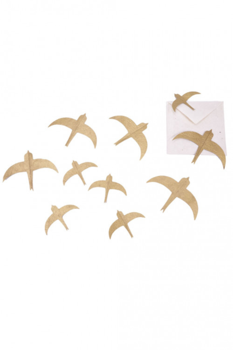 Ensemble de 10 hirondelles décoratives en papier népalais, fait à la main au Népal.