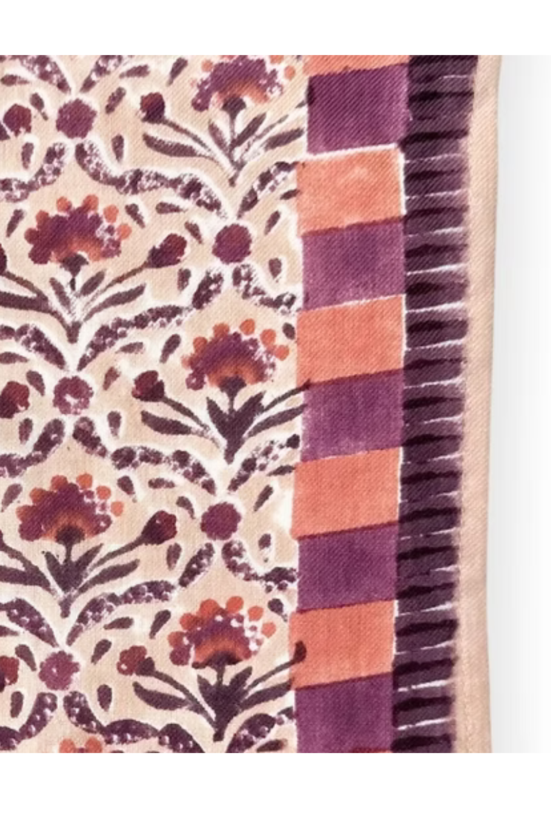 Fabriqué artisanalement grâce à la technique indienne du block-print, ses couleurs sont réalisées à partir de pigments naturels. Cette fabrication manuelle peut entraîner certaines "irrégularités".